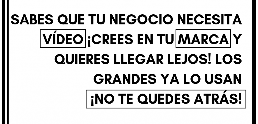 Crea atractivos vídeos de marketing para tu empresa. Cuéntanos tu historia ¡Déjanos sorprenderte! Nuevos formatos de vídeo para conquistar al consumidor. Encuentra nuevos clientes y conecta con ellos. Publicidad en redes sociales. Segmenta tu audiencia. ¡Muestra al mundo tu negocio!